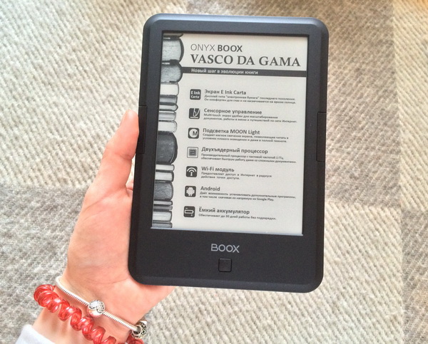 ΠΠ»Π΅ΠΊΡΡΠΎΠ½Π½Π°Ρ ΠΊΠ½ΠΈΠ³Π° ONYX BOOX Vasco da Gama 4 ΡΠ²Π»ΡΠ΅ΡΡΡ ΠΏΡΠΎΠ΄ΠΎΠ»ΠΆΠ΅Π½ΠΈΠ΅ΠΌ Π»ΠΈΠ½Π΅ΠΉΠΊΠΈ 6 Π΄ΡΠΉΠΌΠΎΠ²ΡΡ Π³Π°Π΄ΠΆΠ΅ΡΠΎΠ², Π½ΠΎ Ρ Π±ΠΎΠ»Π΅Π΅ ΠΏΡΠΎΡΠ°Π±ΠΎΡΠ°Π½Π½ΡΠΌ ΠΈΠ½ΡΠ΅ΡΡΠ΅ΠΉΡΠΎΠΌ, ΡΠΊΡΠ°Π½ΠΎΠΌ ΠΈ ΠΆΠ΅Π»Π΅Π·ΠΎΠΌ. ΠΠ½ΠΈΠ³Π° ΠΌΠΎΠΆΠ΅Ρ ΠΏΠΎΡ Π²Π°ΡΡΠ°ΡΡΡΡ ΡΠΊΡΠ°Π½ΠΎΠΌ Ρ…