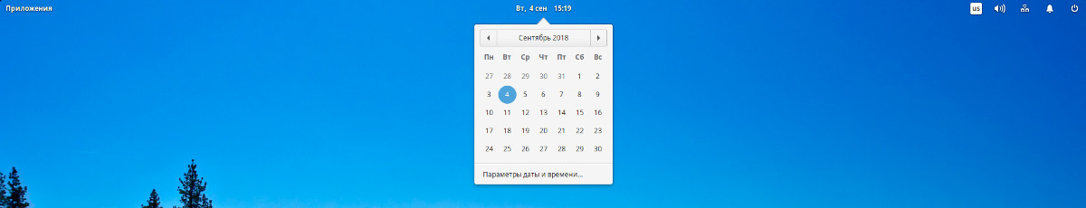 Клик по дате или времени откроет простой календарь, также, как и в Gnome.