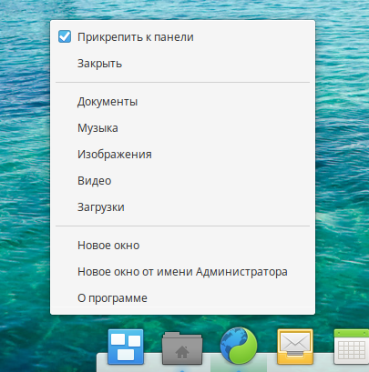 Внизу экрана находится простая и красивая док панель, очень похожая на то, что вы могли видеть в MacOS. Она выглядит намного лучше, чем любая другая док панель для Linux. Здесь расположены ваши любимые приложения и приложения, которые запущены на данный момент. Вы можете добавить новое приложение, просто перетащив его из меню приложений или же нажав правой кнопкой на запущенном приложении и выбрав «Закрепить на панели».