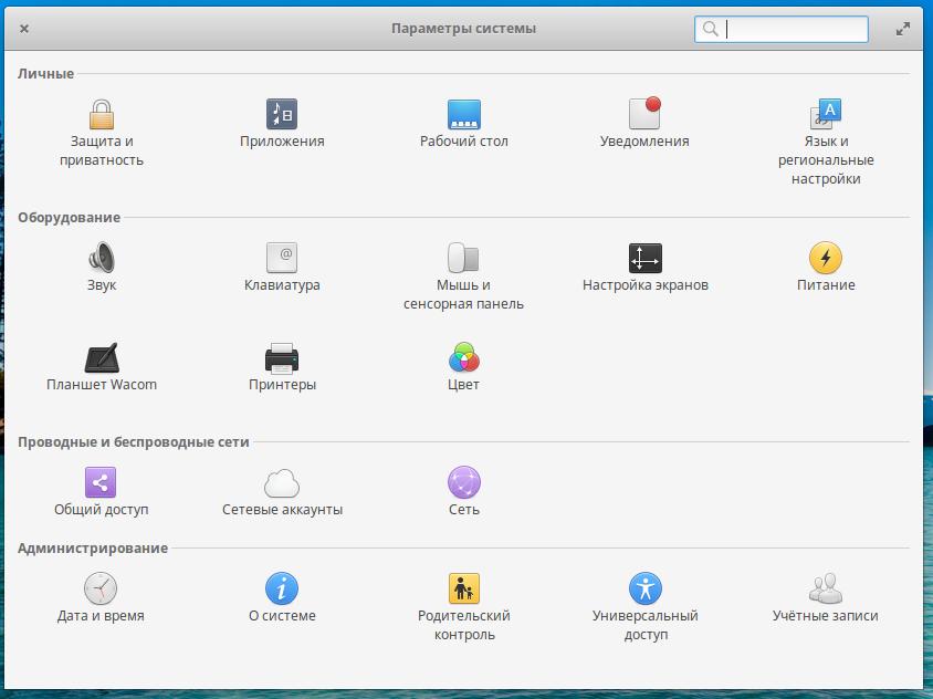 - Switchboard — менеджер настроек, похожий на Gnome Control Center.