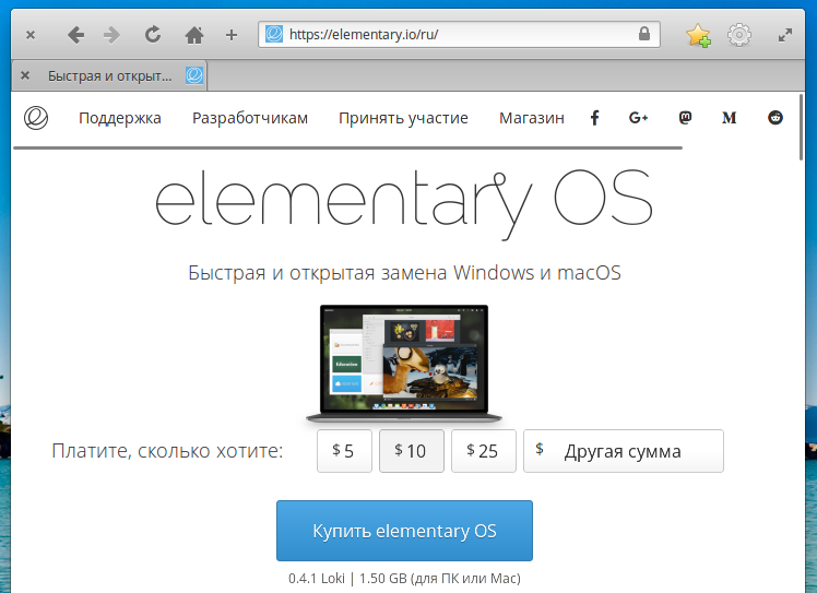 Элементарная ОС 5.0 Juno доступна для скачивания на главной странице дистрибутива. Разработчики надеются на пожертвования, которые хотят скачать установочный образ, но тоже бесплатно.