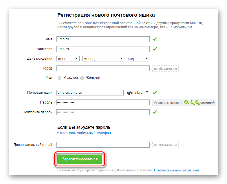Вводим все данные и жмем на кнопку «Создать аккаунт»: