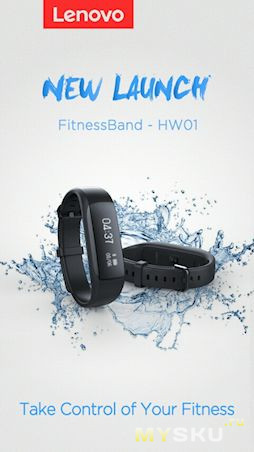 После установки приложения отображается реклама, в которой можно увидеть, что у Lenovo есть две версии фитнес-браслета – рассматриваемый в обзоре HW01 и HW02, с лучшей водо и пылезащитой, но с меньшим экраном.