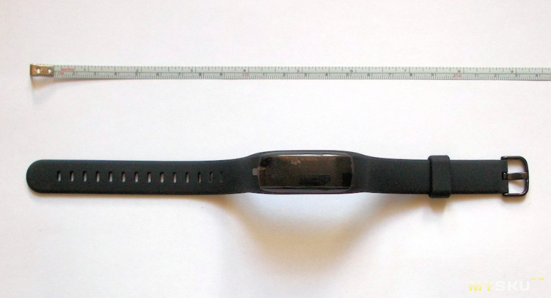 Корпус ремешка сделан из очень мягкого, приятного на ощупь силикона. Общая длина браслета – 24 см, как и указано в описании. Ширина ремешка — 16 мм, толщина – чуть больше 2 мм. Габаритные размеры самого устройства – 40 x 18 x 14 мм.
