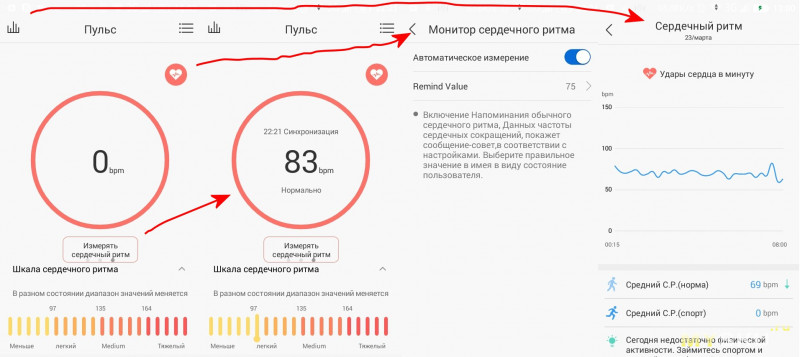 Устройство может измерять пульс автоматически каждые 15 минут и подавать вам сигнал в том случае, если его значение превышает заданную вами величину. Эта функция приводит к значительному расходу энергии батареи, поэтому при желании её можно отключить.