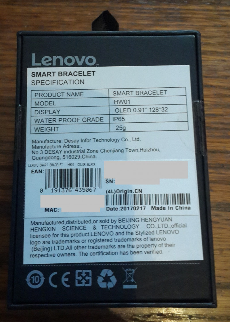 Браслет пришел вот в такой черной коробочке. Сразу видно, что Lenovo.