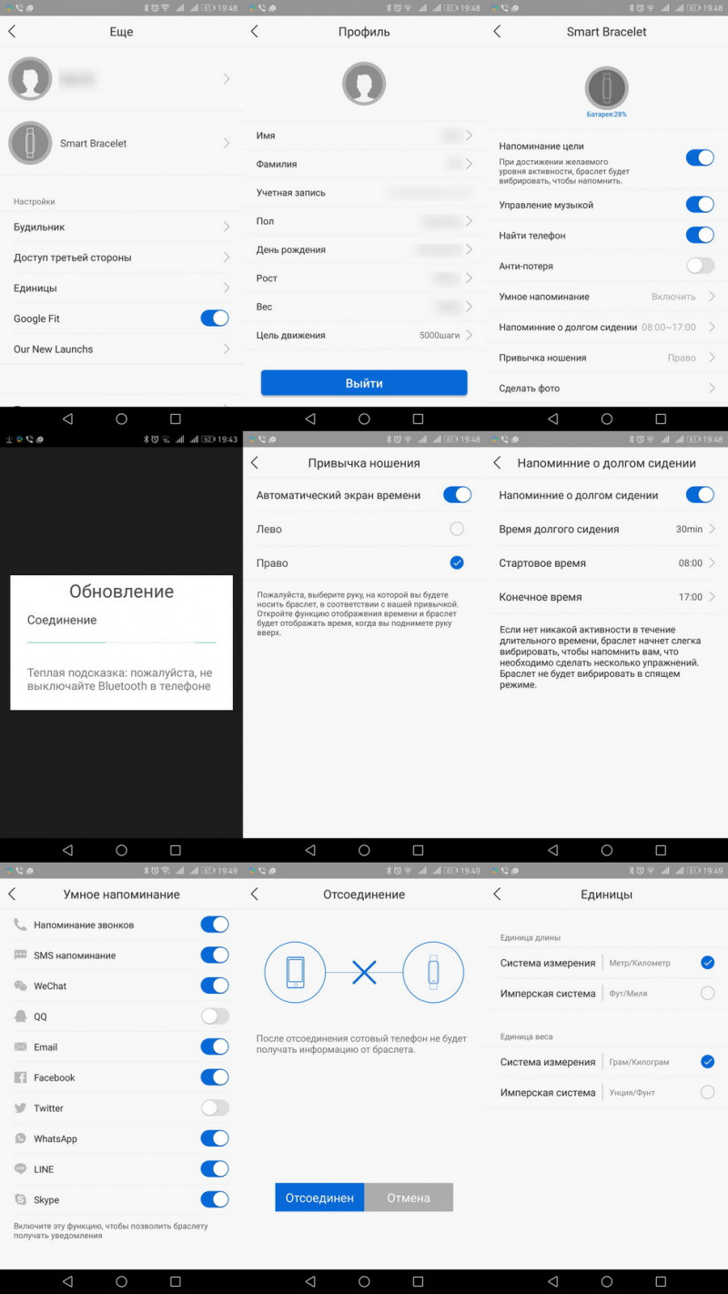 Вот перечень некоторых специальных функций, доступных браслету через мобильное приложение, которое, кстати, неплохо русифицировано.