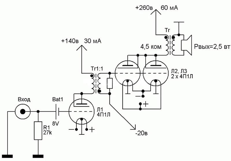 Посмотреть полную информациюСбалансированный, с нулевой обратной связью, двойной моно с каскадом усиления 6C45.