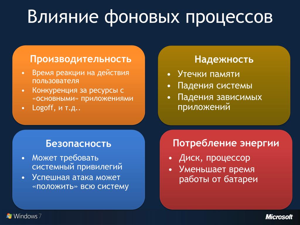 Давайте рассмотрим некоторые распространенные фоновые процессы и причины их использования.