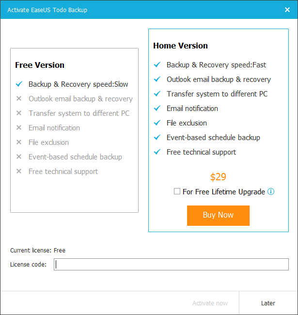 Сравнение возможностей EaseUS Todo Backup Free и платной Home-версииБесплатная версия может производить резервное копирование и восстановление с обычной скоростью, а Home-версия делает это гораздо быстрее.