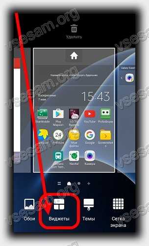 Чтобы его вывести на рабочий стол нажмите на нем пальцем в любом свободном месте и немного придержите палец. Затем нажмите на виджеты.