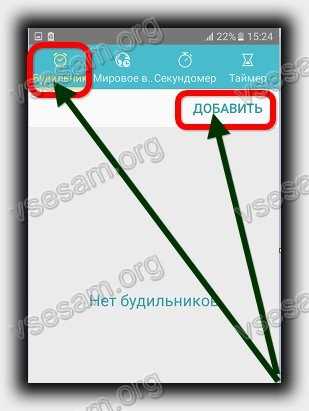 Теперь (если выбрана опция «Будильник») верху справа нажимаем на «Добавить»