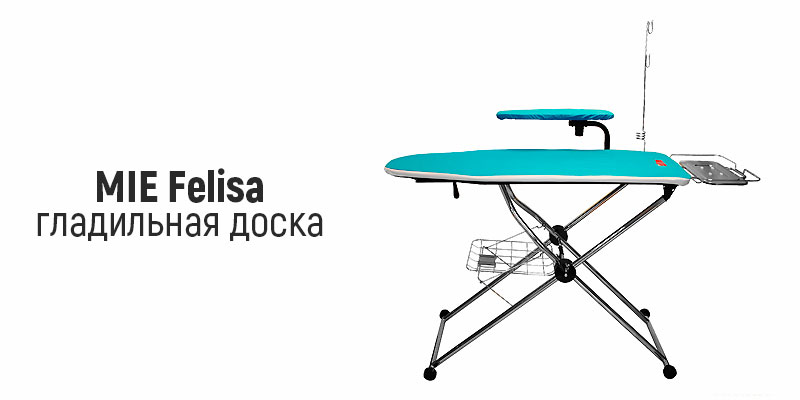 Модель оснащена необходимыми для удобства аксессуарами: полочка для белья, стойка с вешалкой для одежды, тефлоновая насадка, гладильная подушечка и другими.