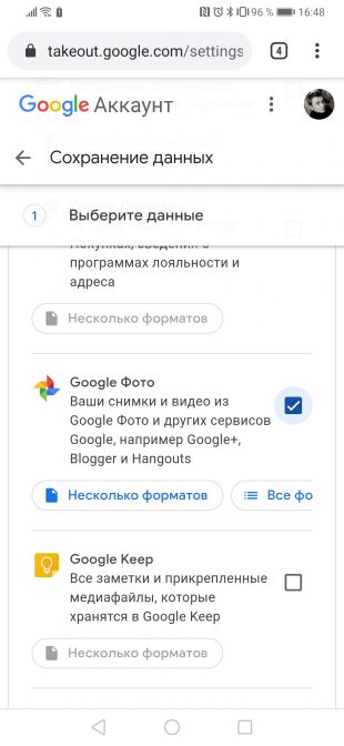 Все свои фотографии из «Google Фото» можно скачать одним большим архивом. Такой бэкап делается при помощи дополнительного сервиса Google Takeout, который позволяет выгружать все данные, связанные с вашим Google-аккаунтом.