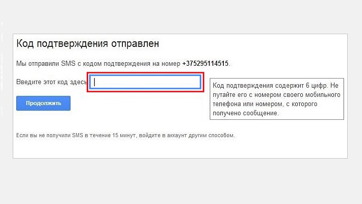После этого откроется окно, где нужно ввести номер телефона, который мы указывали, и снова нажать кнопку «Продолжить»: