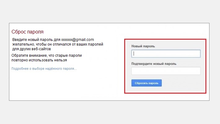 - Далее, перед нами откроется окно, где станет доступным поле для ввода нового пароля от аккаунта Гугл.
