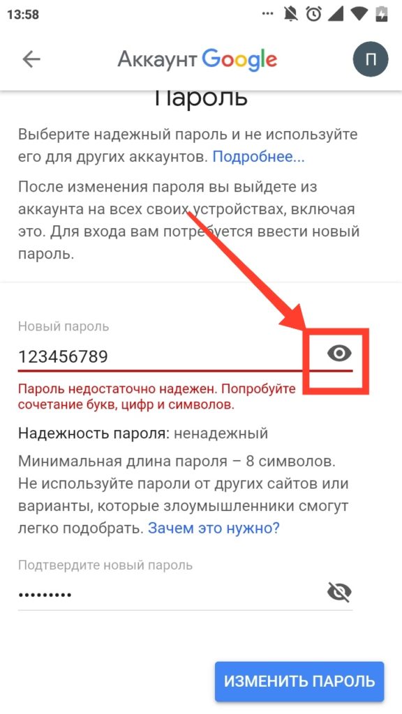 Но все же, если вы считаете, что ваш пароль дискредитирован, конечно, лучше его сменить. Также следует помнить, что после смены пароля вы выйдете из своего аккаунта на всех устройствах Android, телефоне или планшете.