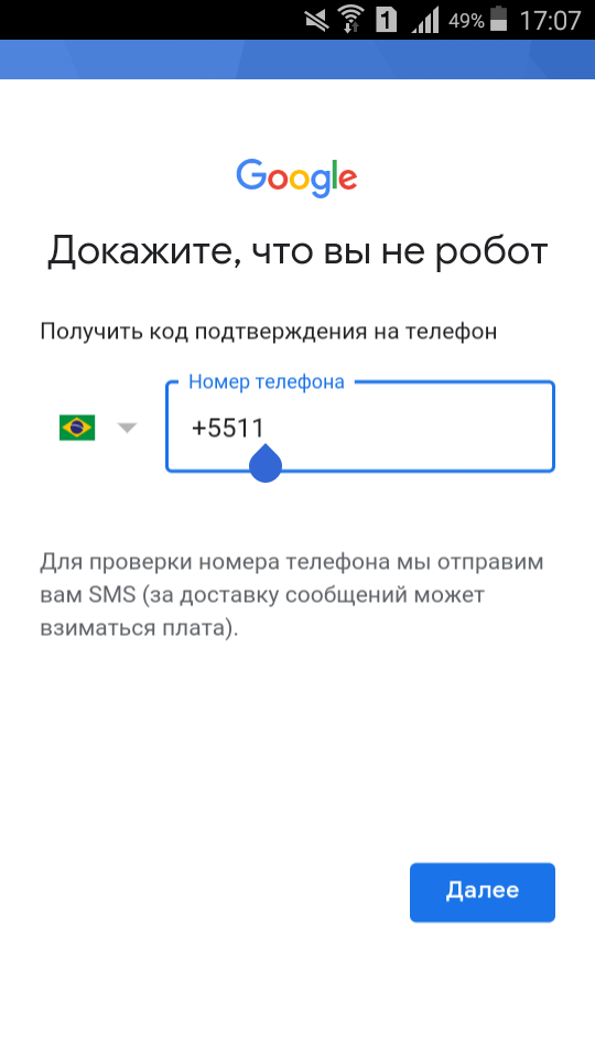 Следующий экран немного отличается, в зависимости от того, решили ли вы использовать существующий адрес электронной почты или выбрали новый Gmail . Если вы использовали все возможности Google, вам будет предложено ввести свой номер телефона. Убедитесь, что ваш телефон находится в пределах досягаемости, введите номер и нажмите или коснитесь Далее .
