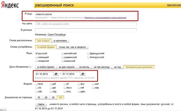 Поиск с ограничением по интервалу дат |