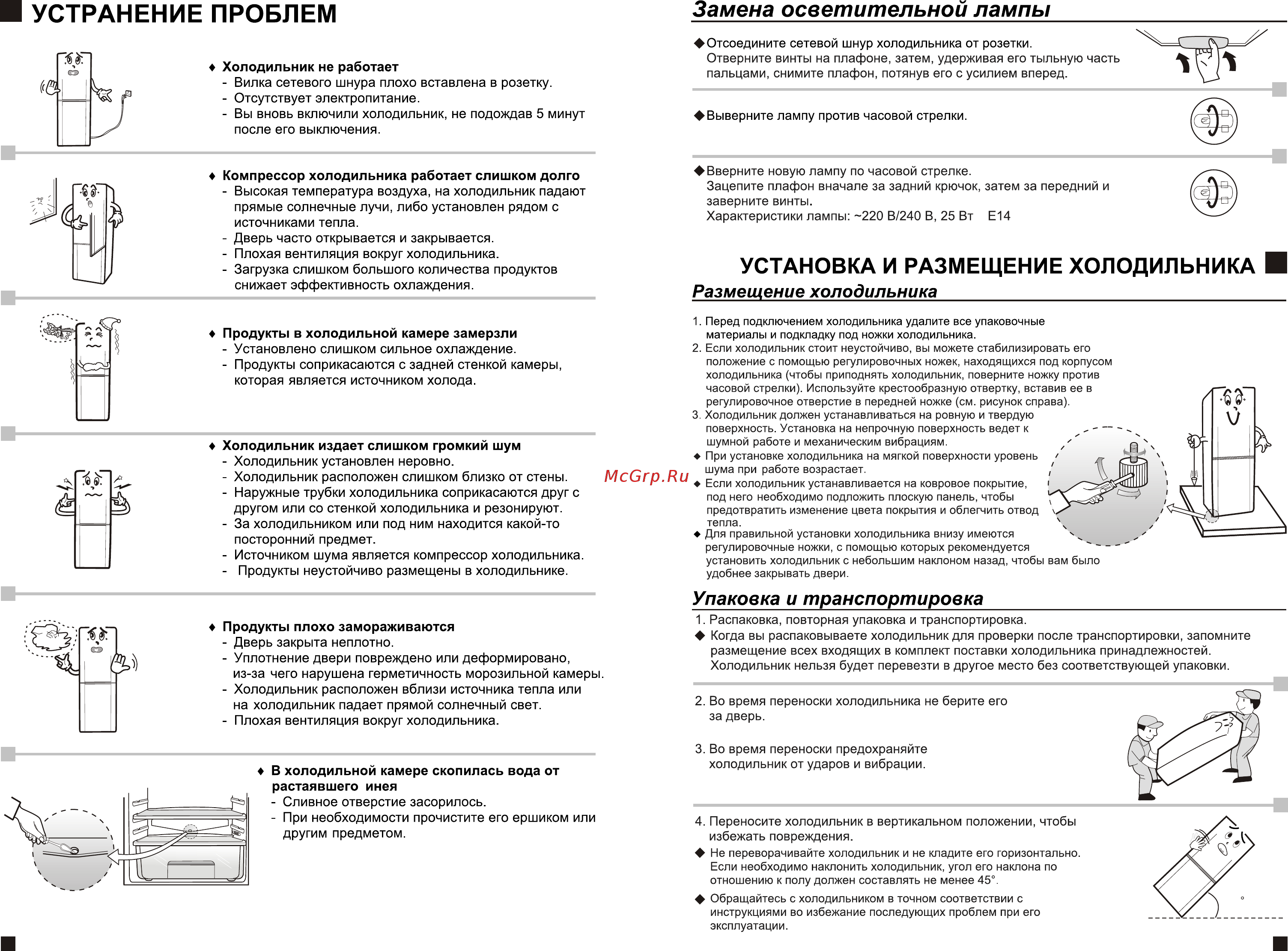 Причины: (не часто) функция размораживания не работает.(нормальный) Воздуховод над испарителем забит льдом. (не часто) Двигатель вентилятора вышел из строя.