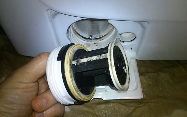 Достаточно распространенное явление, так как во время стирки именно сеточка слива становится центром скопления различного мелкого мусора, ниток, волос, шерсти и прочее. Все это со временем накапливается, забивает отверстия слива, не давая воде беспрепятственно покинуть машинку.