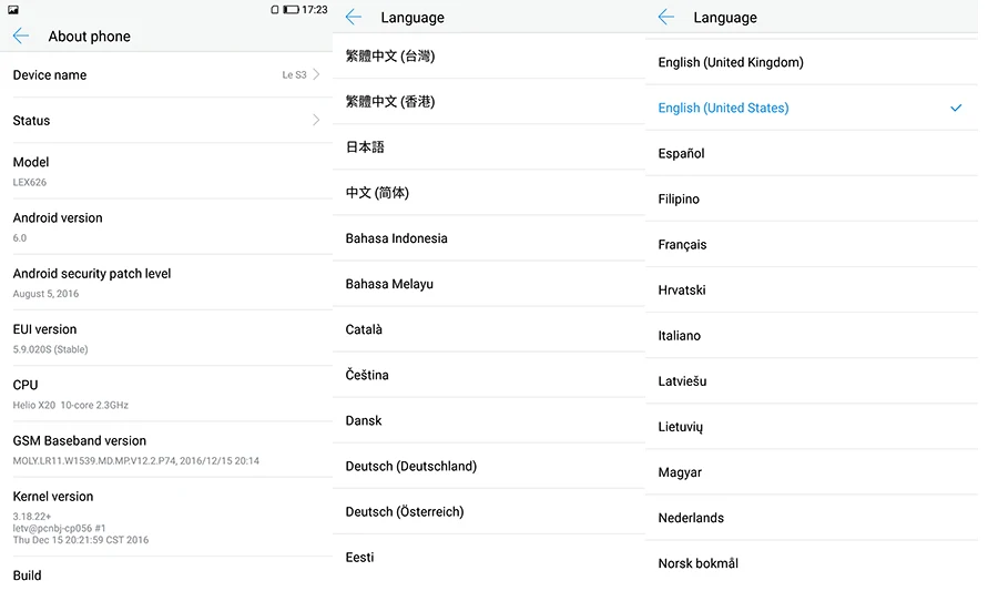0 (Lollipop) — Leeco Le 1sandroid 6.0 (Marshmallow) — Leeco Le 1S Eco