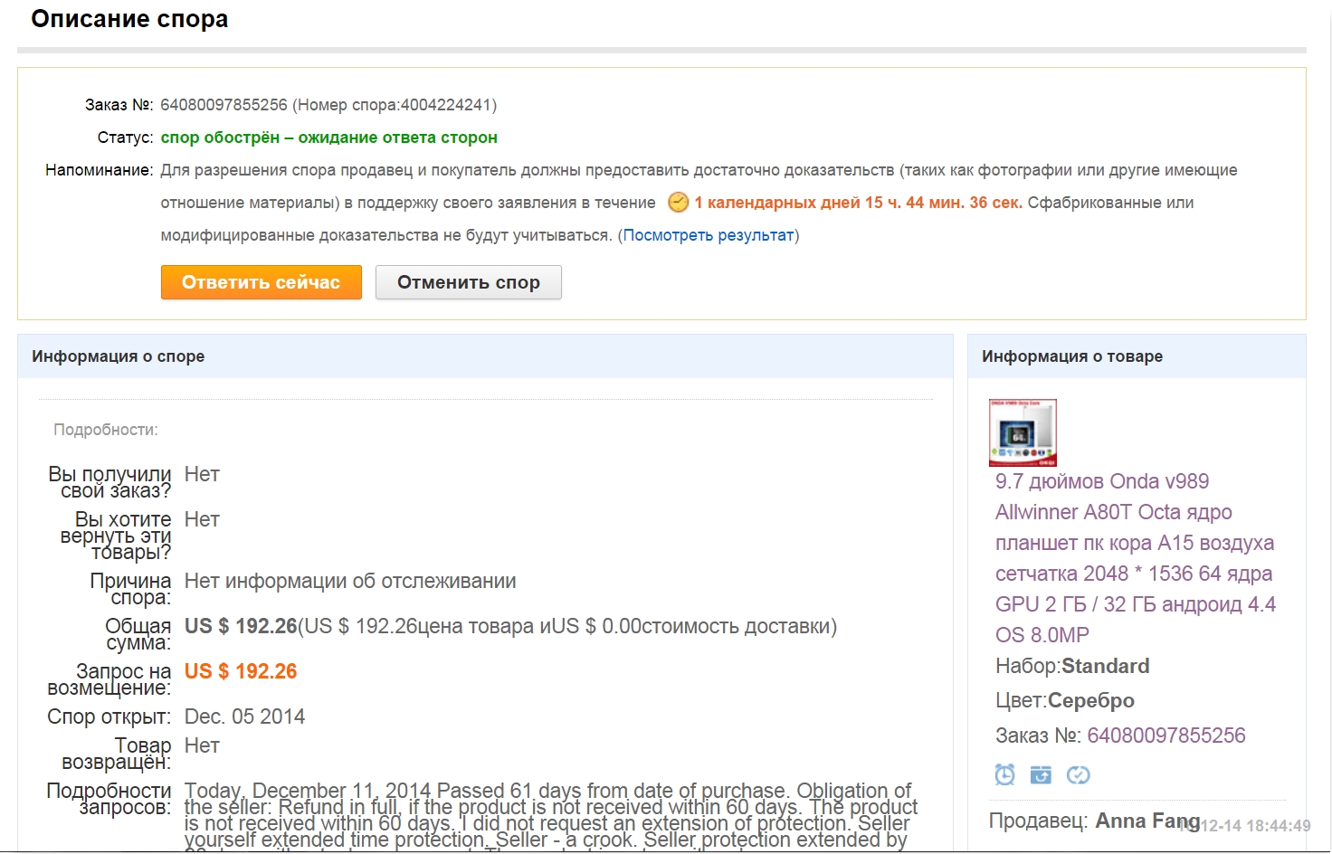 Однако очень часто при заказе товара покупатели сталкиваются с множеством проблем, которые необходимо решить в ограниченный интервал времени. В этом случае только вовремя открытый «спор» поможет решить проблему.