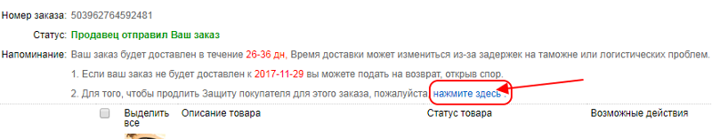 Пока действует эта функция, вы без проблем можете открыть спор с продавцом, если покупка задержалась, не отслеживается или по факту прибытия оказалось, что отправили вам не совсем то, на что вы рассчитывали. Поэтому проблеме продления защиты уделено так много внимания, в том числе большое количество диспутов открываются именно потому, что продавец медлит в подтверждении продления защиты заказа. Но как поступать покупателю, если срок закончился, а товара вовсе нет или он явно бракованный?