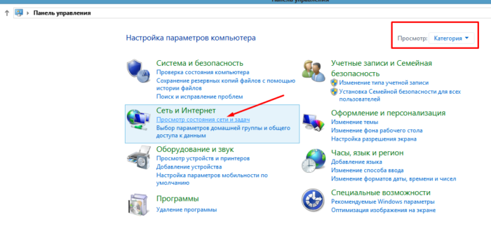 Шаг 6. Щелкнуть «Просмотр состояния…», если указана «Категория», или «Центр управления…», если активированы «Значки».