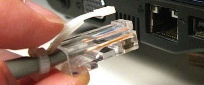 В компьютере кабель требуется в воткнуть в порт LAN