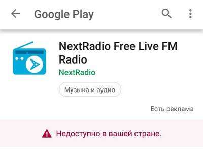 1. Если в смартфоне нет встроенного FM-тюнера, будет написано «Приложение не совместимо ни с одним из ваших устройств» или «Недоступно в вашей стране».