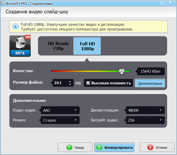 Единственным недостатком можно назвать то, что выходной формат видеоролика будет только МР4.
