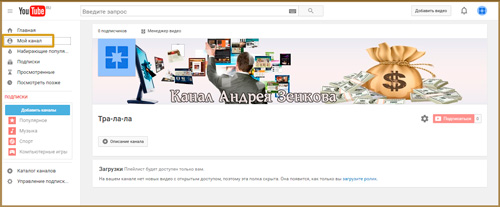 Прежде всего, чтобы добавить свою мелодию вам нужно зайти на Youtube и на ваш канал.