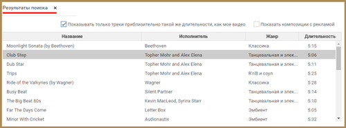 Справа — все понятно. Список аудиозаписей, рекомендованный Youtube. Можете выбрать из него. Ничего не понравилось? Откройте вкладку «Композиции» и посидите, послушайте, повыбирайте. Обязательно найдете что-нибудь интересненькое. А вот пользоваться поиском бесполезно, только если вы не суперпрошаренный меломан. Дело в том, что музыкальная картотека состоит из треков малоизвестных музыкантов-ноунеймов и просто древних, как мамонтов композиторов. Даже несмотря на то, что она очень большая — 150 000 композиций. С другой стороны — отличный выбор классической музыки.