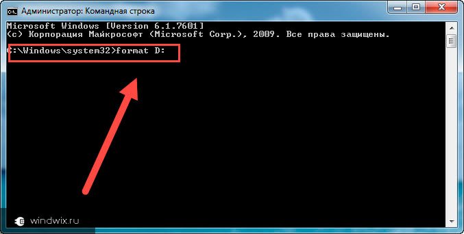 Для выполнения быстрой очистки, пропишите команду «format d: /q».