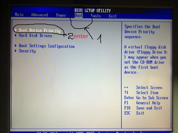 2. Определите порядок загрузки: сделайте загрузочной формы CD / DVD в качестве первого варианта> Сохранить> Выход