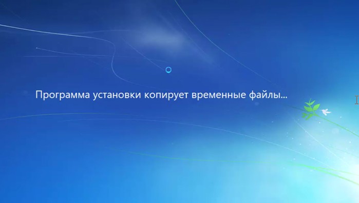 - Сразу после запуска с флешки или загрузочного DVD появится черное окошко, в котором система загружает начальную конфигурацию. Процесс занимает около 30 секунд (узнать как записать Windows 7 на флешку можно тут).