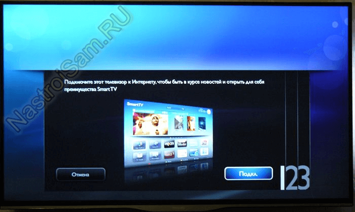 Далее телевизор проверит, если ли новые версии программного обеспечения для телевизора, если есть предложит обновить их. Вам необходимо согласится с обновлением прошивки. Если же новых версии ПО нет, откроется окно сообщающее, что у вас уже установлена последняя версия программного обеспечения.