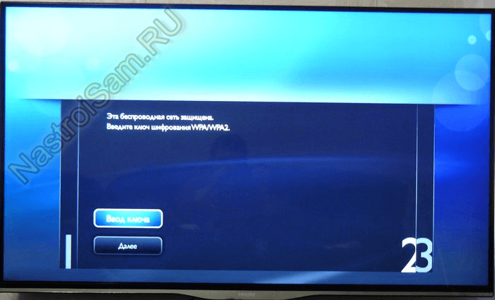 - Если такая кнопка не предусмотрена, то логин и пароль придется вводить вручную с помощью пульта ДУ. Нажимаете сканирование. Откроется перечень сетей, которые доступны. Вводите SSID (или ищете в списке) и ключ сети (пароль) и подключаетесь.