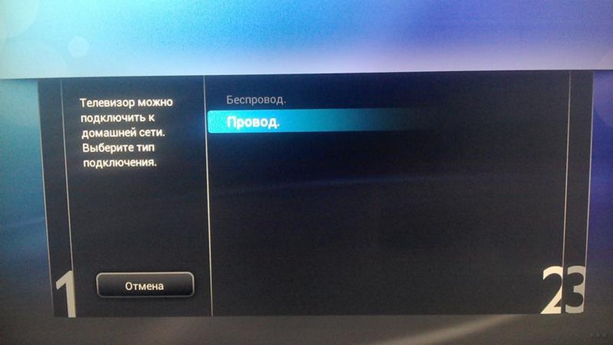 Выбираете тип подключения «Беспроводной» или «Проводной». Беспроводной способ подразумевает под собой подключение к роутеру с помощью Wi-Fi сети, проводной- с помощью сетевого кабеля подключенного к роутеру.