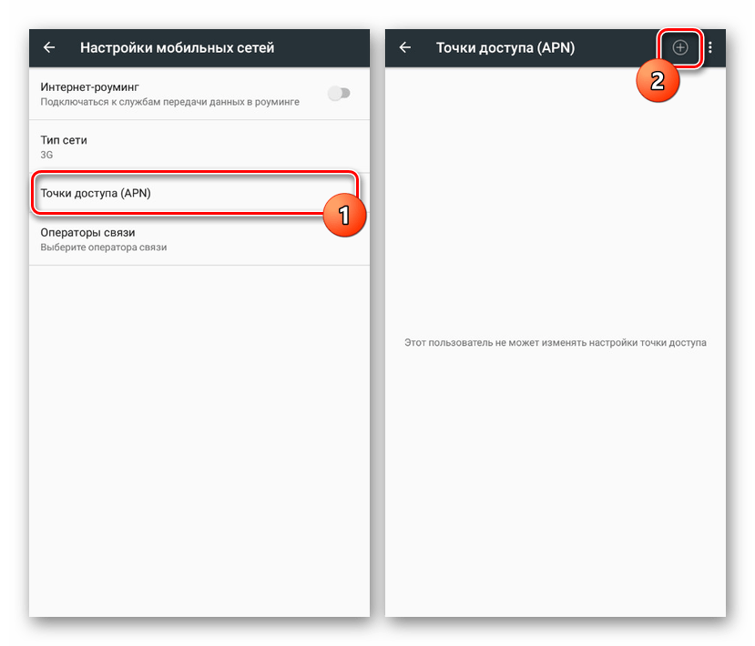 3. Если требуется, выберите используемую СИМ-карту и нажмите по строке «Точки доступа». При наличии здесь настроек MMS, но при неработающей отправке, удалите их и тапните на «+» на верхней панели.