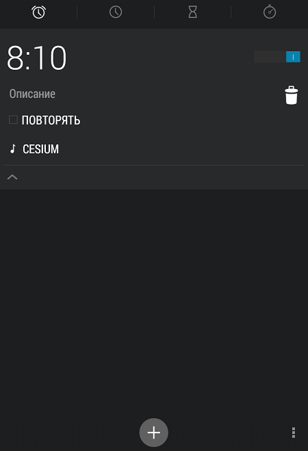- Отключить будильник можно, нажав на значок справа от строки с установленными будильниками.