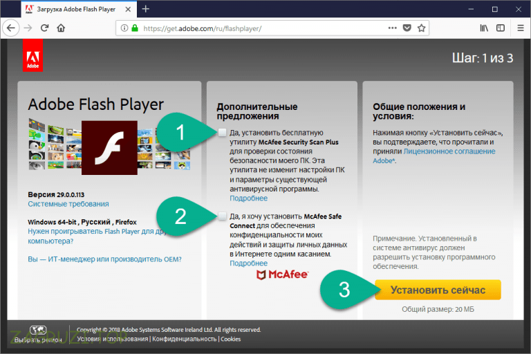 Загрузка и установка Adobe Flash Player
