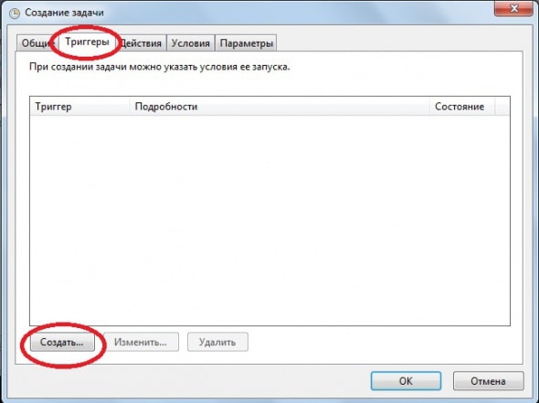 5. Перейдите во вкладку «Триггеры». Нажмите на кнопку «Создать».