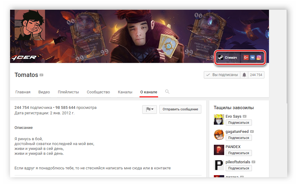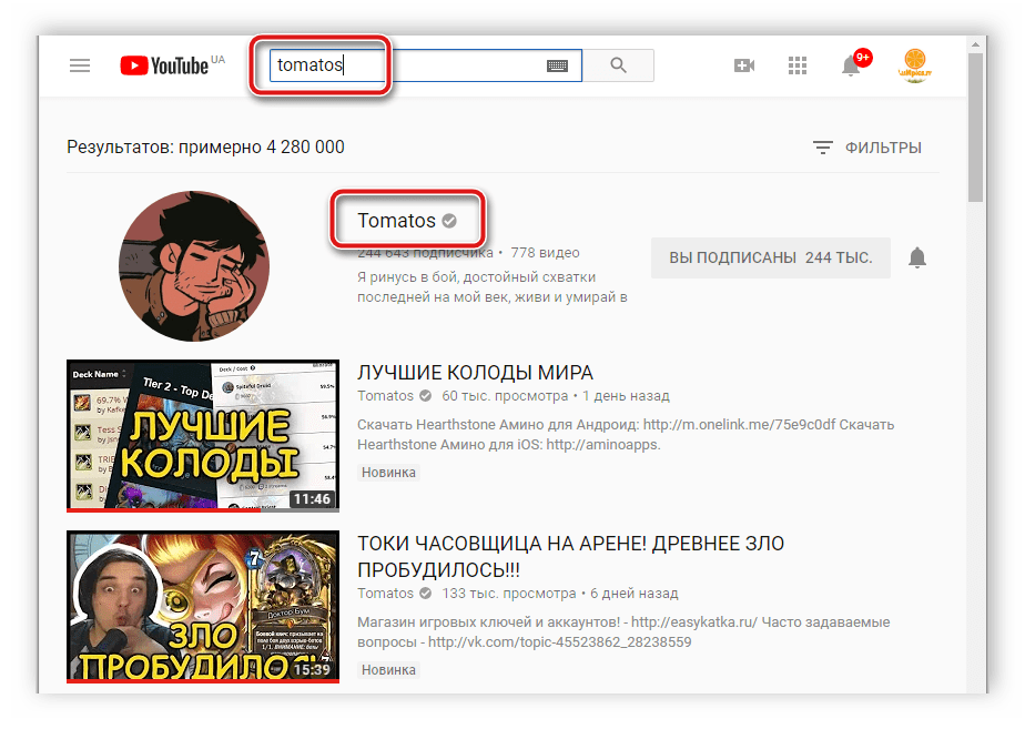 Переходим — канал Ютуб.