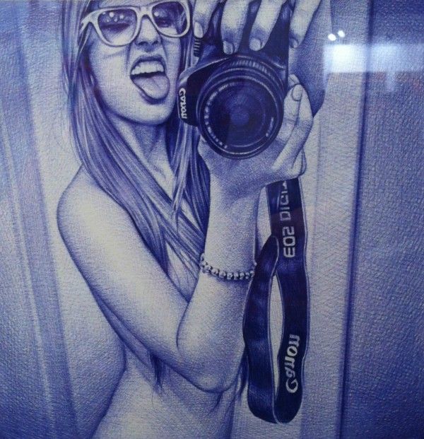 Когда вы делаете автопортрет, рисуйте все плечо, а не только руку и запястье. Это дает вам гораздо больше свободы при рисовании.