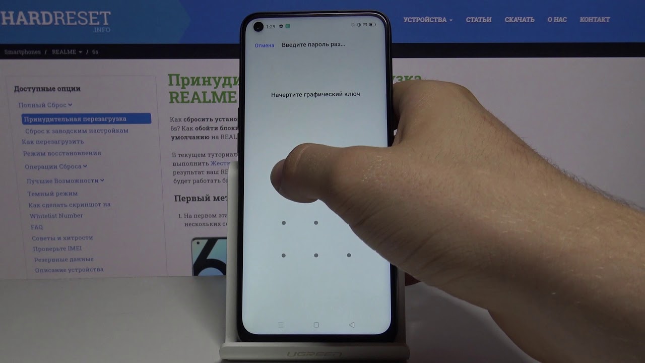 - Затем необходимо перезагрузить телефон и ввести любой графический пароль.