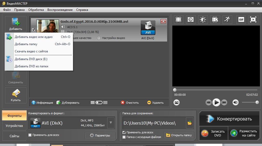Конвертировать видео