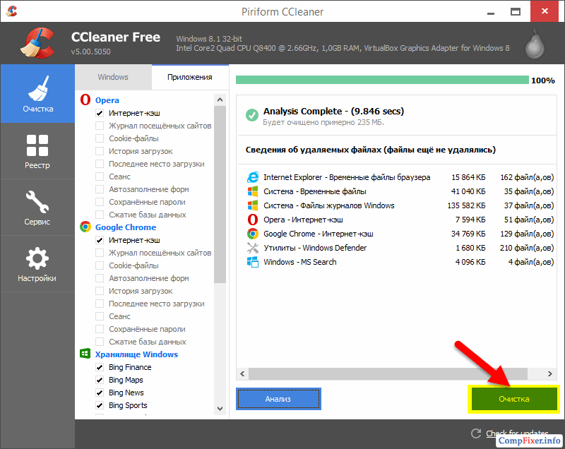 Выполните следующие действия, чтобы очистить систему при помощи CCleaner:
