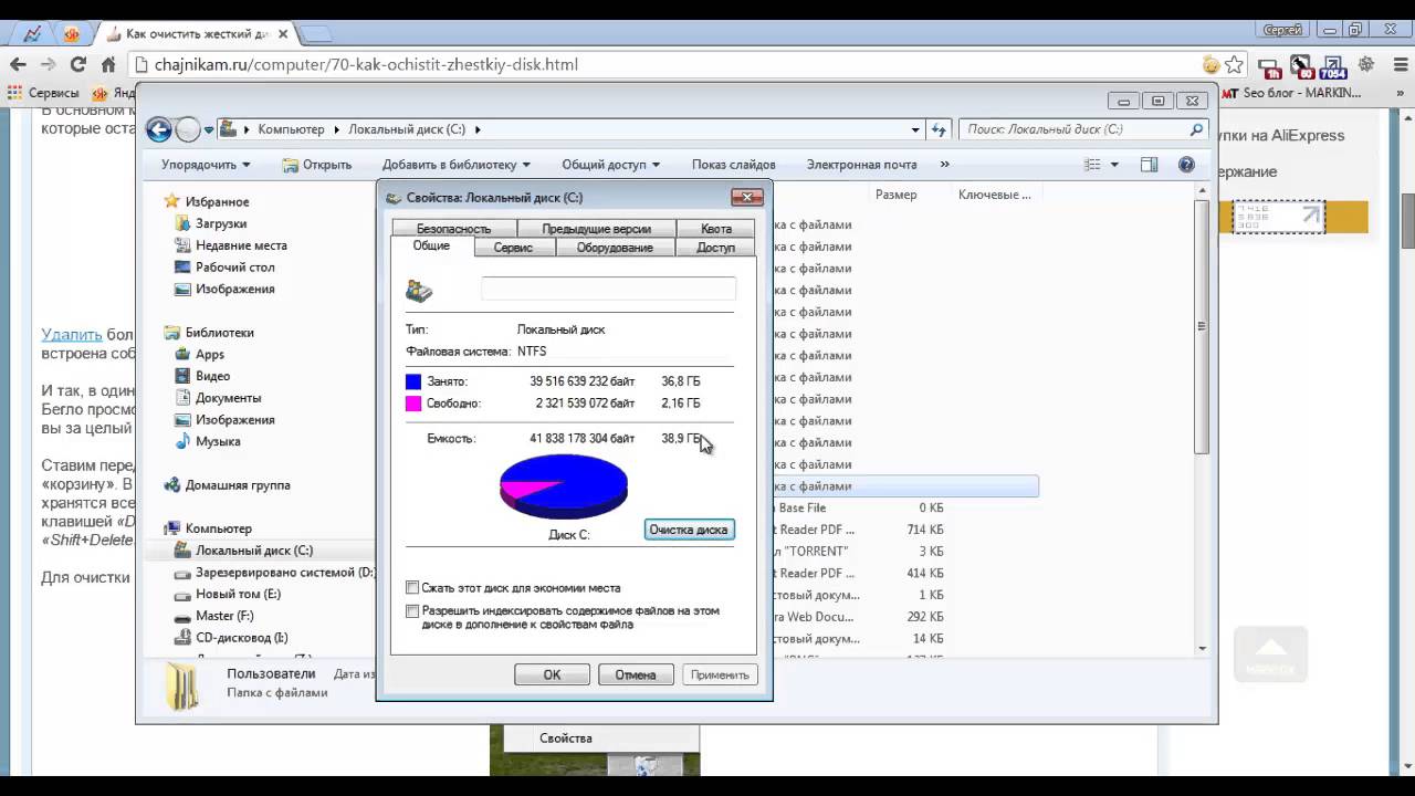 По умолчанию все файлы, которые вы скачиваете через браузеры и файловые менеджеры, попадают в папку «Загрузки», что находится в разделе С. Просмотрите, что там сейчас находится, — как правило, это установщики разных программ и прочие, ставшие неактуальными, файлы. Перенесите то, что необходимо, в другие папки, а остальное — удалите. Если все загрузки попадают на Рабочий стол или в другую папку, выполните то же самое там.